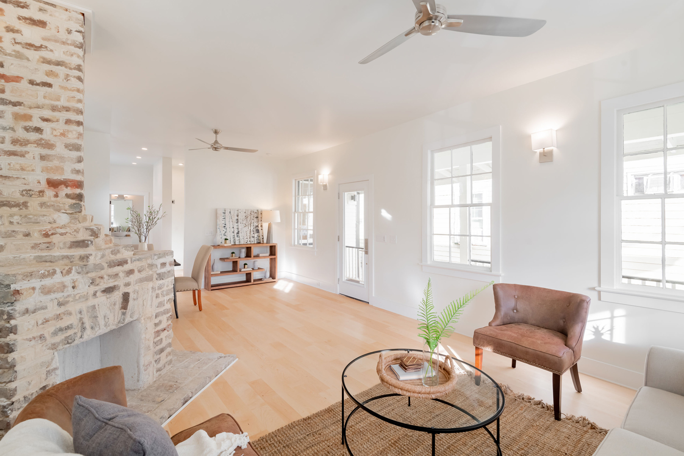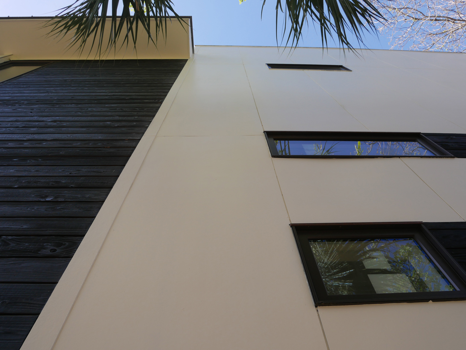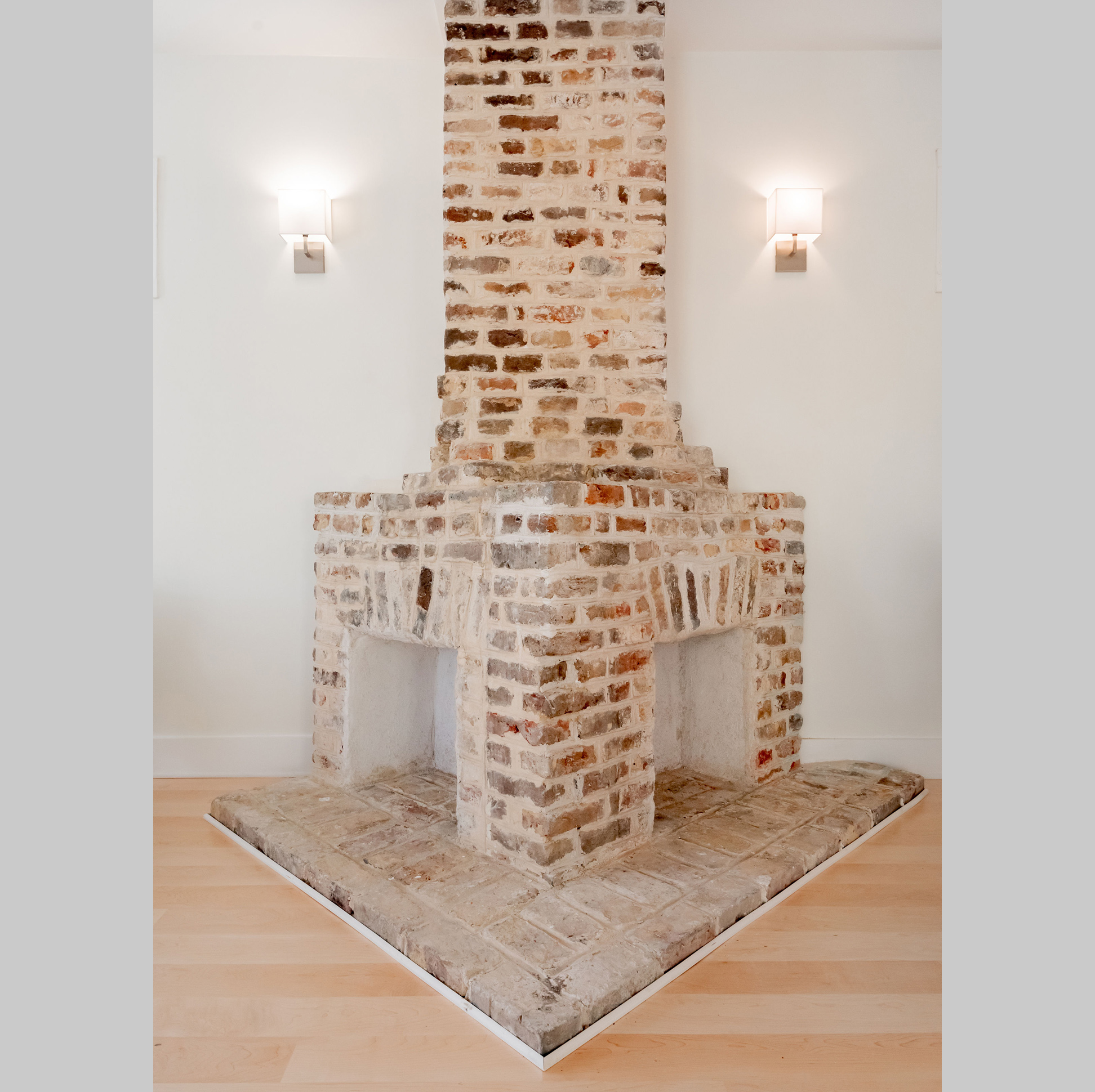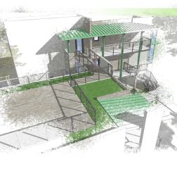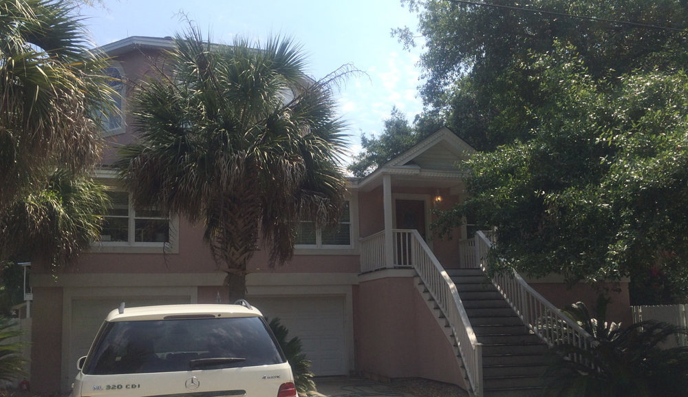 This estate home perches itself on an ocean bluff surrounded by lush Oaks and sub-tropical brush. Greeted by a carriage house at the gate, the elevated home allows for a grand entrance and a mix of traditional shingle shake siding and brick in a modern color pallet. Tall glazed walls allow the main living space to view forward while the rear of the space has oversized pocked glass walls that slide open onto a screened area and pool deck. A large kitchen with catering space is connected by a formal dining area to the great room for endless entertaining space. A secluded main floor master suite captures views toward the water, while a private office perches over the drive to welcome guests. A mix of dark shake shingles, light brick, and copper roofs mix up the traditional material pallet into a modern beach retreat.